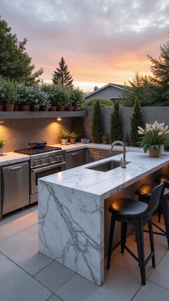 Выбирая уличные столешницы из керамогранита, обратите внимание на плотность и наличие защитных покрытий, усиливающих стойкость поверхности. Также важно учитывать устойчивость к загрязнениям и легкость ухода. Свежие коллекции отличаются разнообразием текстур и цветов, что позволяет легко подобрать лучший вариант для вашего экстерьера.
