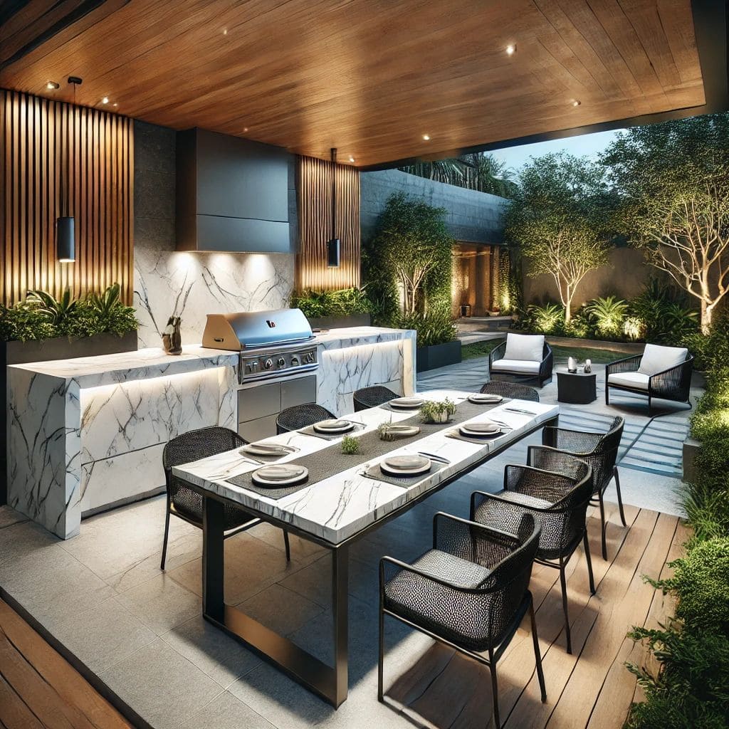 При выборе уличных столешниц из керамогранита важно обращать внимание на их дизайн. Современные коллекции предлагают широкий ассортимент оттенков, текстур и имитаций природных материалов. Это позволяет создать стильное и универсальное решение, которое будет сочетаться с любым экстерьером. Функциональность таких столешниц обеспечивает комфортное использование для обедов, работы или украшения уличных зон отдыха.